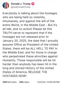 - Hezbollah says that pause will apply to it, Jerusalem Post (22 Nov 2023)